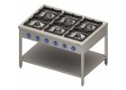 Sporák stolní plynový značky REDFOX SP 70/08G, 4x hořák s vnitřním hořením, 1x hořák 3,5 kW, 3x hořák 6 kW, litinové rošty, piezo zapalování, rozměry (šxhxv) 80x70x33 cm.