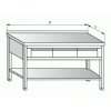 Zásuvkový nerezový stůl slouží pro skladování náčiní, produktů a klasická nerezová pracovní plocha pro krájení a manipulaci.